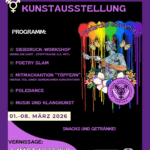 Das queerfeministische Kunstkollektiv Koblenz, rund 20 Kunstschaffende und Studierende der HfGG laden ein zur Ausstellung rund um den Internationalen Frauen*- und feministischen Kampftag und setzen ein Zeichen für Sichtbarkeit und Solidarität. Die Ausstellung schafft einen offenen Raum für Kunstschaffende und bündelt ihre Stimmen als künstlerische Positionen und gesellschaftskritische Perspektiven. Mit Werken aus Malerei, Fotografie, Performance, Musik und Tanz sowie interaktiven Formaten. Herzliche Einladung!